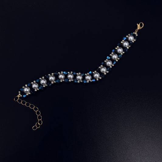 Elegant Handcrafted Pearl and Crystal Bracelet