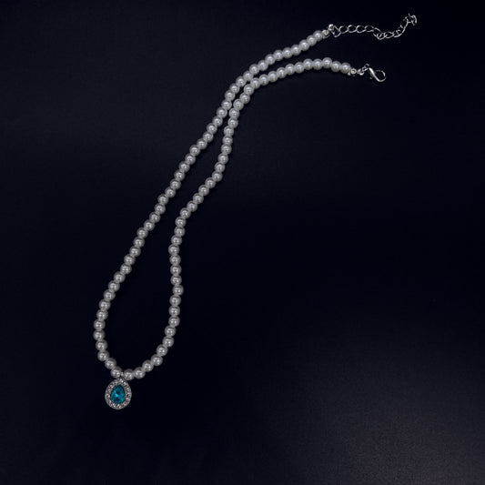 Elegant Pearl Necklace with Blue Crystal Pendant