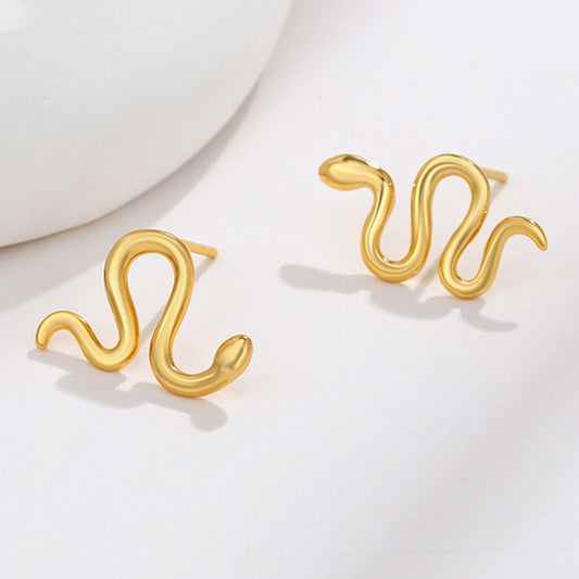 24K Gold Plated Snake Stud Earrings Simple Funny Adorable Animal Ear Studs