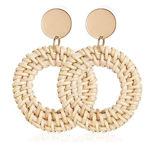 Ellipse Resort Earrings Bohemian Travel Drop Dangle Rattan Earrings