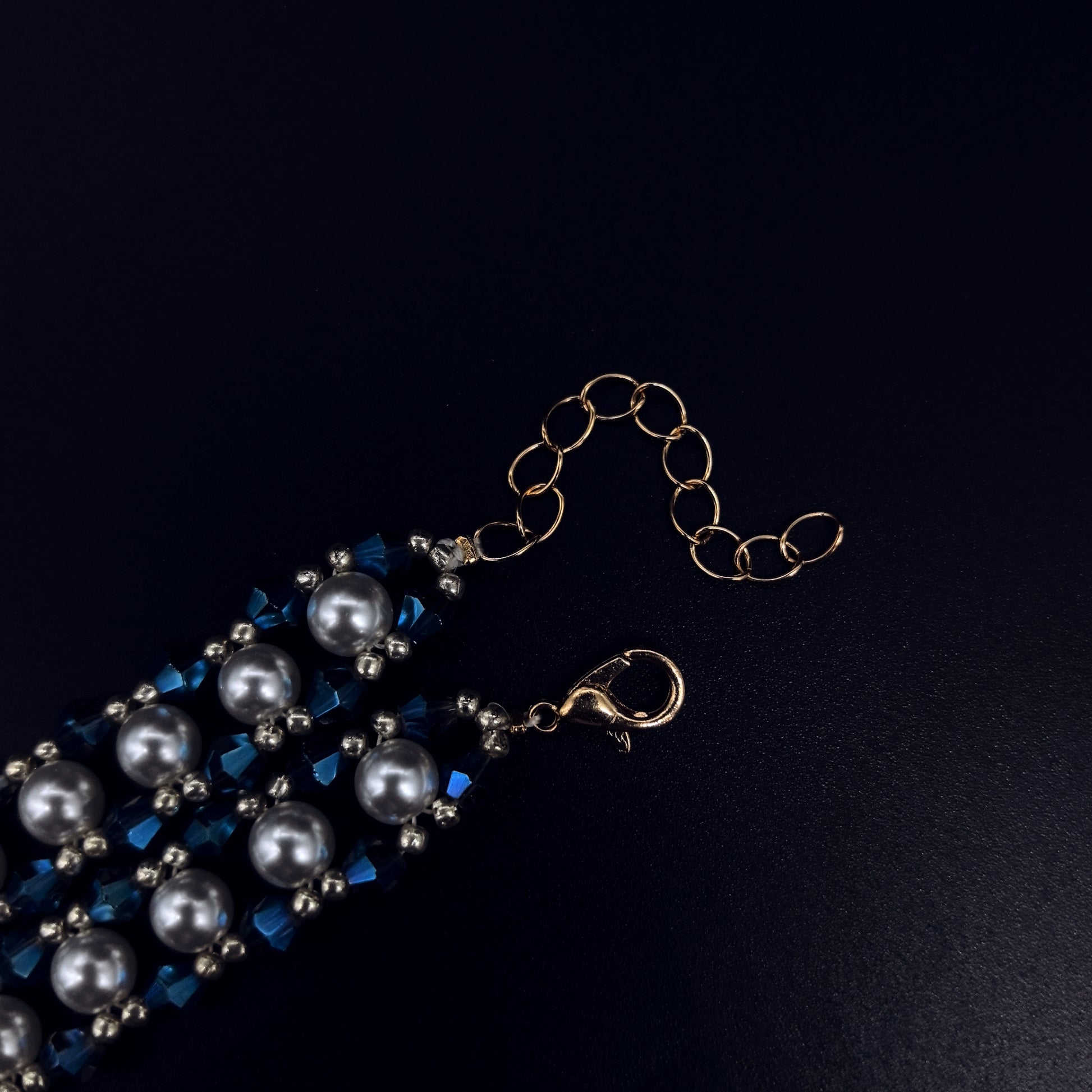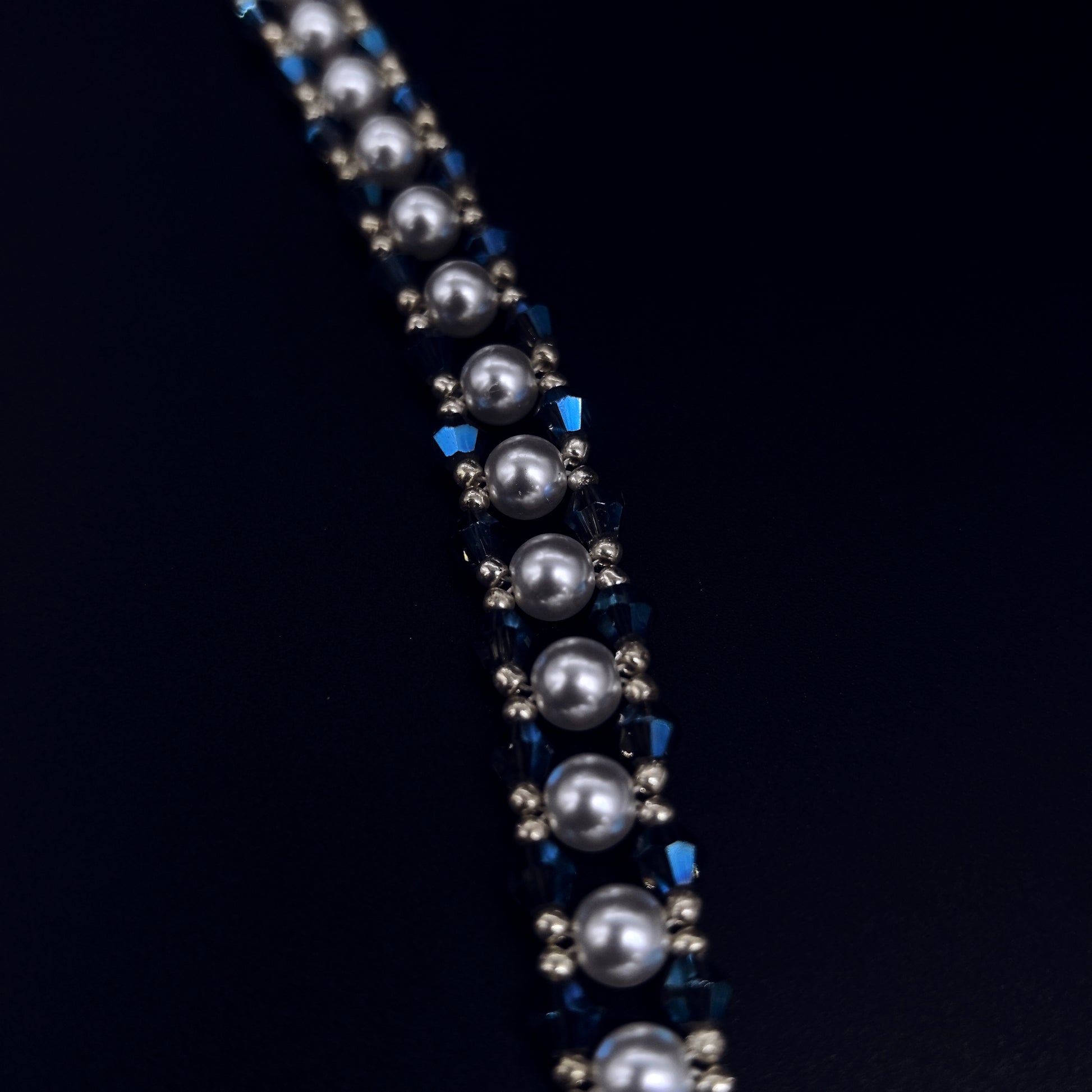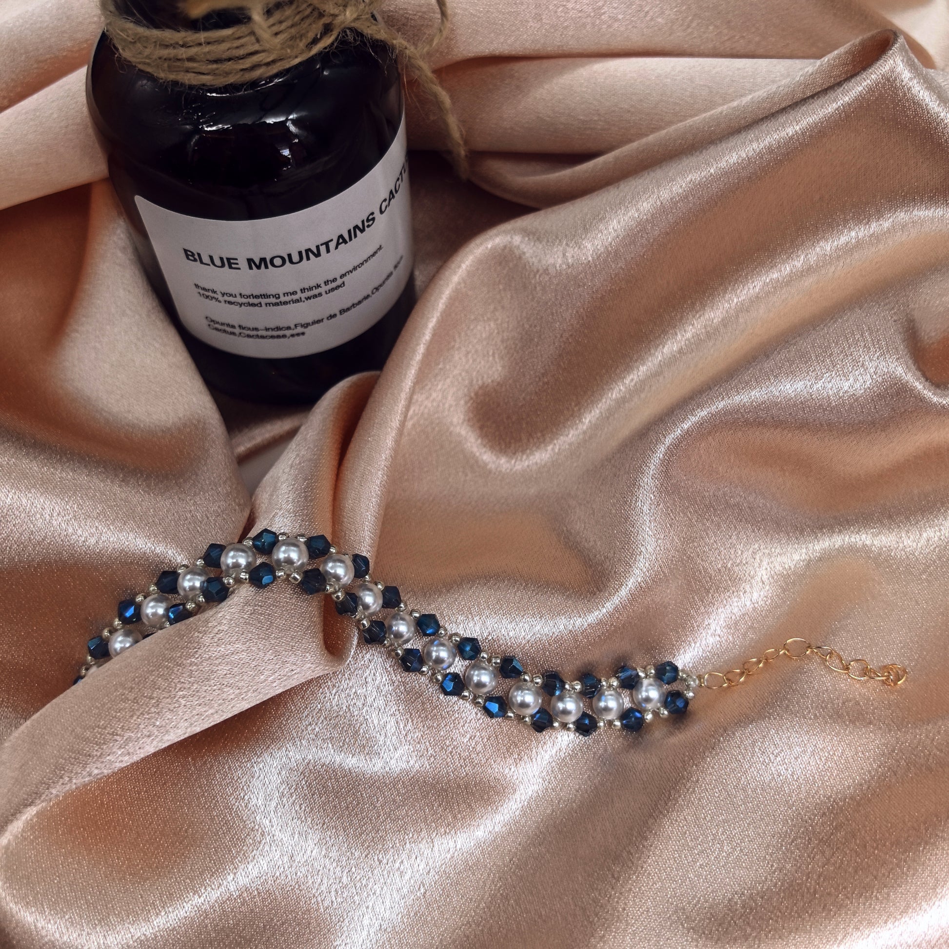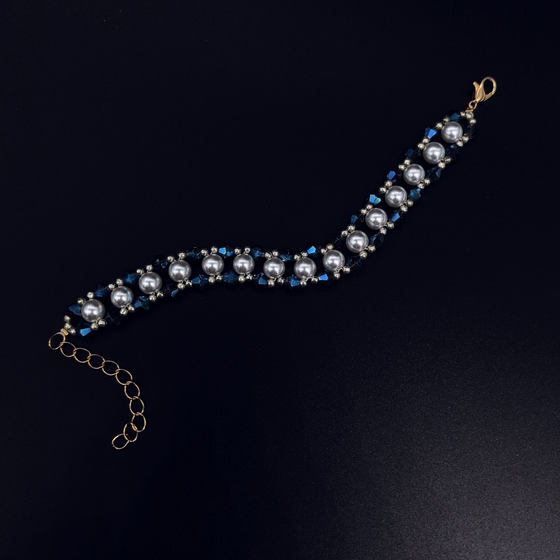 Product Overview:This exquisite handcrafted bracelet combines the timeless elegance of pearls with the vibrant beauty of teal crystals, creating a sophisticated accessory that complements any outfit.