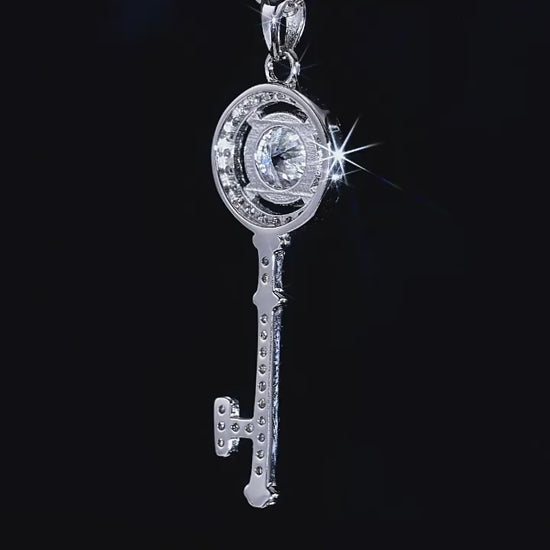 Elegant Sterling Silver Moissanite Key Pendant Necklace